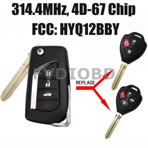 Remote Key 4 Buttons 315MHz 4D67 Chip for 2007-2010 Toyota Avalon Corolla FCC ID: HYQ12BBY